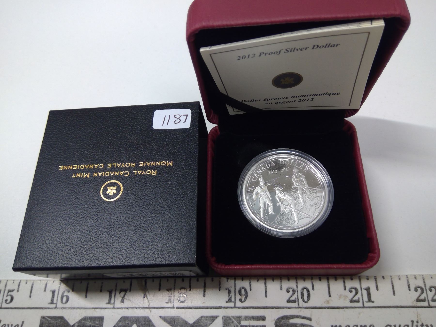 2012 Canadian Silver Dollar. Commemorates the 200th Anniversary of the War of 1812. 99.99 pure Silver. Proof. In maroon case of issue.