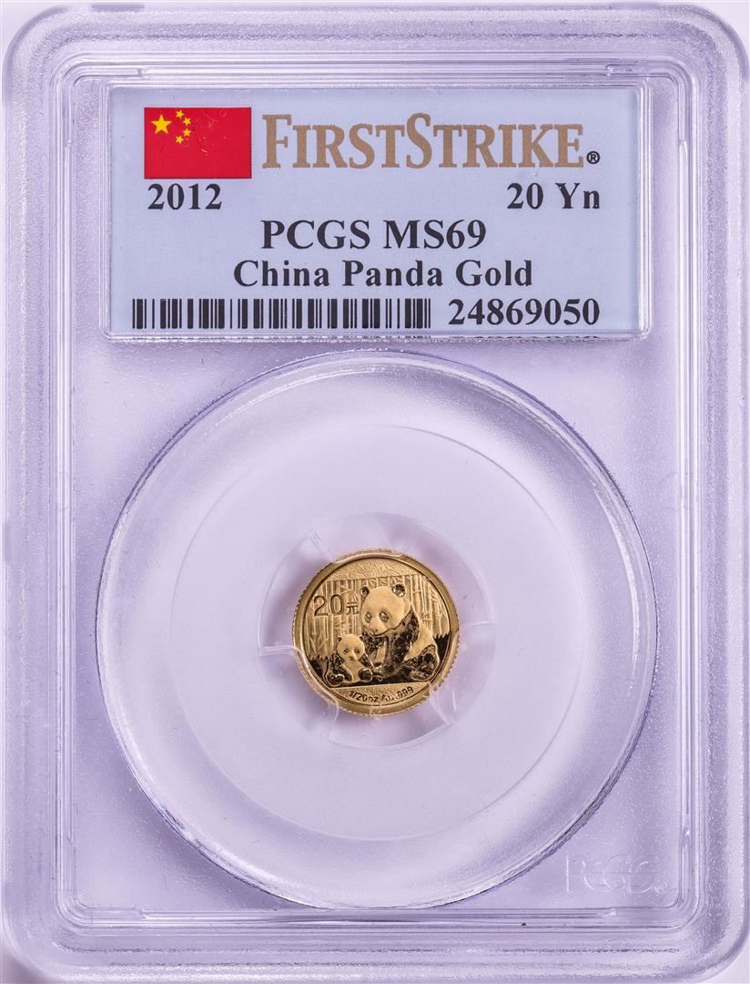 One 2012 China 20 Yuan 1/20oz Gold Panda Coin PCGS MS69 First Strike. PCGS Graded.