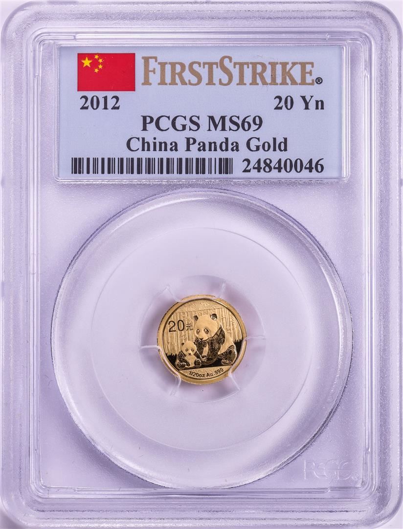 One 2012 China 20 Yuan 1/20oz Gold Panda Coin PCGS MS69 First Strike. PCGS Graded.