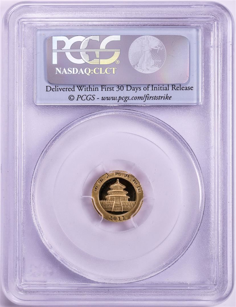 One 2012 China 20 Yuan 1/20oz Gold Panda Coin PCGS MS69 First Strike. PCGS Graded.