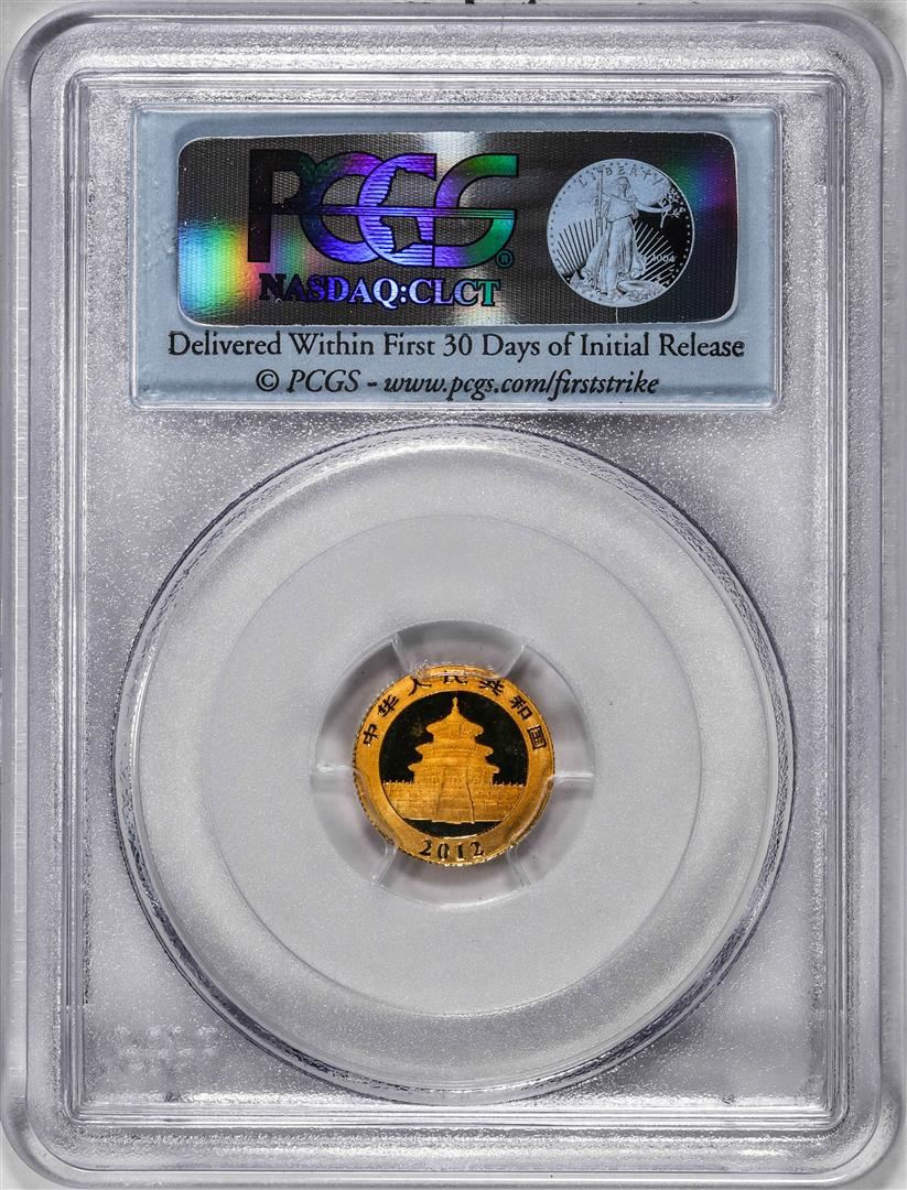 One 2012 China 20 Yuan Gold Panda Coin PCGS MS70 First Strike. PCGS Graded.