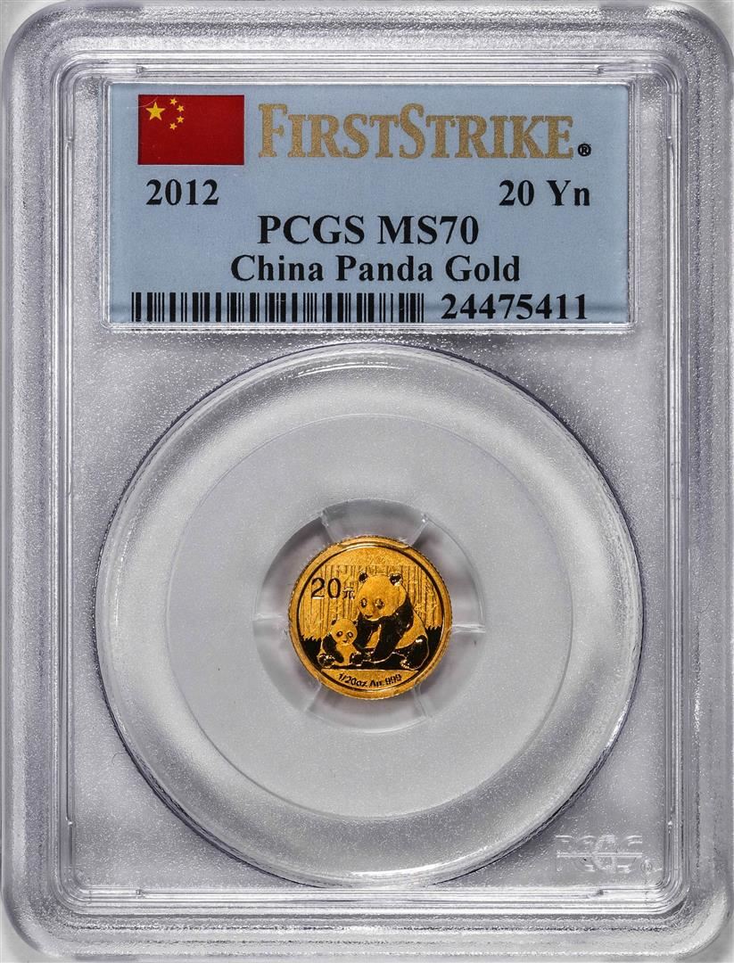 One 2012 China 20 Yuan Gold Panda Coin PCGS MS70 First Strike. PCGS Graded.