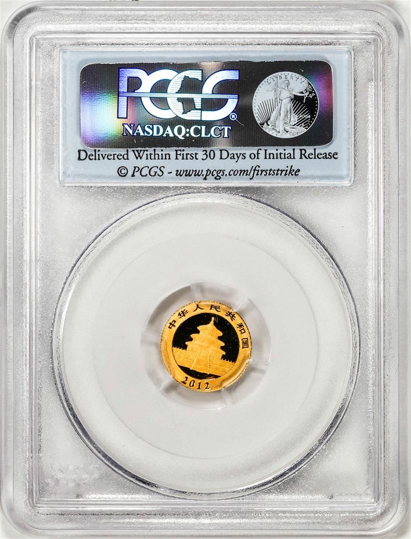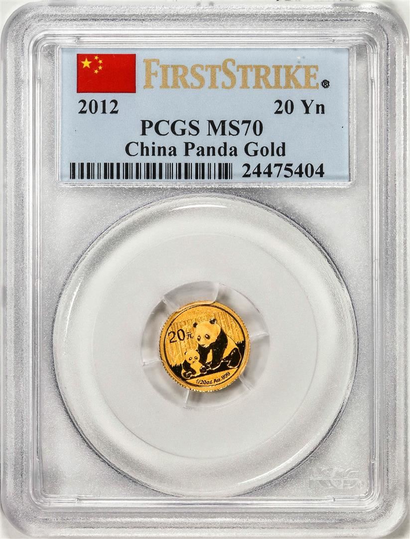 One 2012 China 20 Yuan Gold Panda Coin PCGS MS70 First Strike. PCGS Graded.