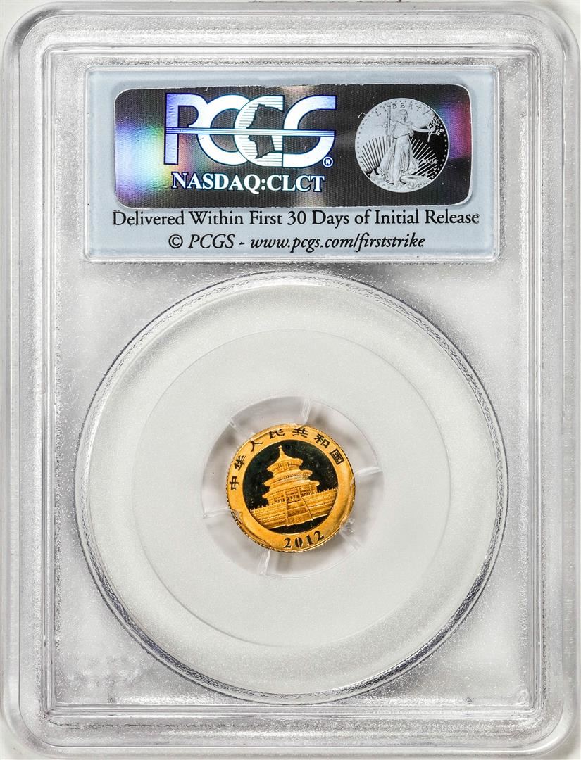 One 2012 China 20 Yuan Gold Panda Coin PCGS MS70 First Strike. PCGS Graded.