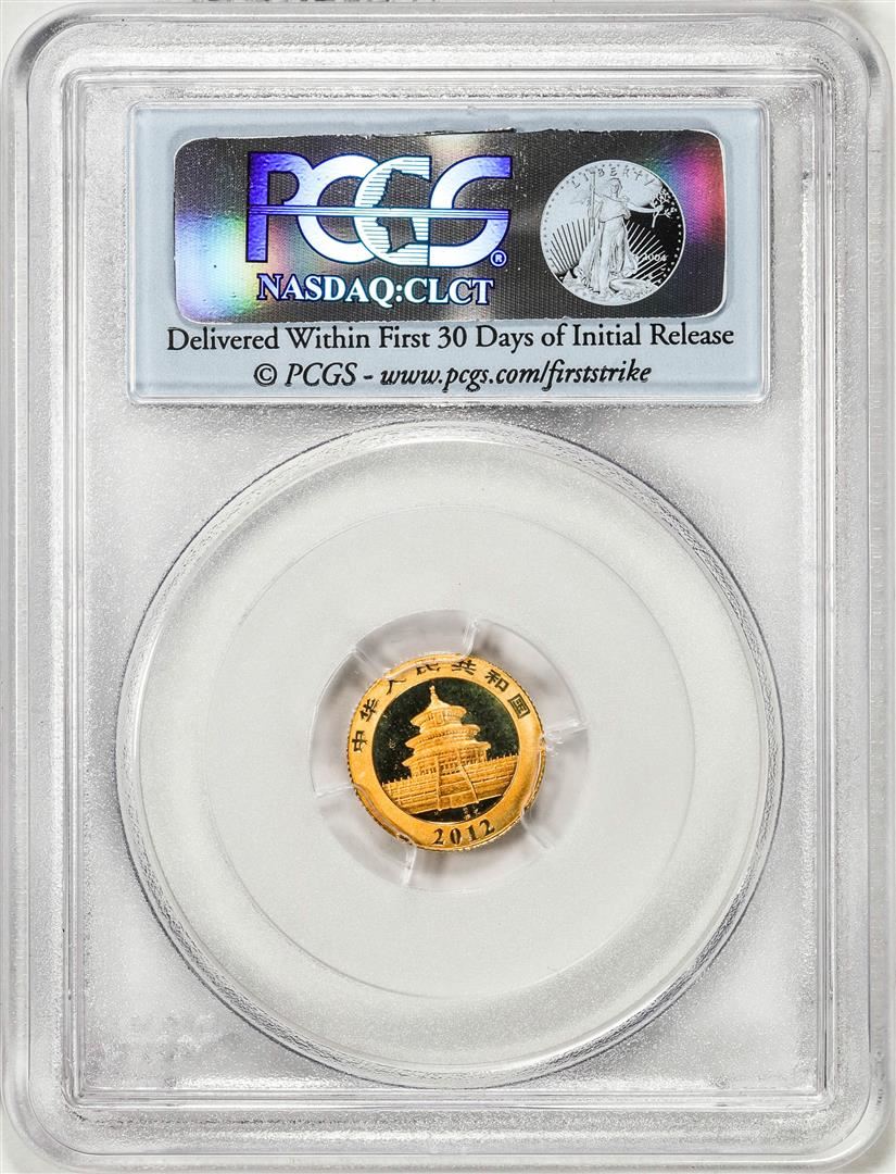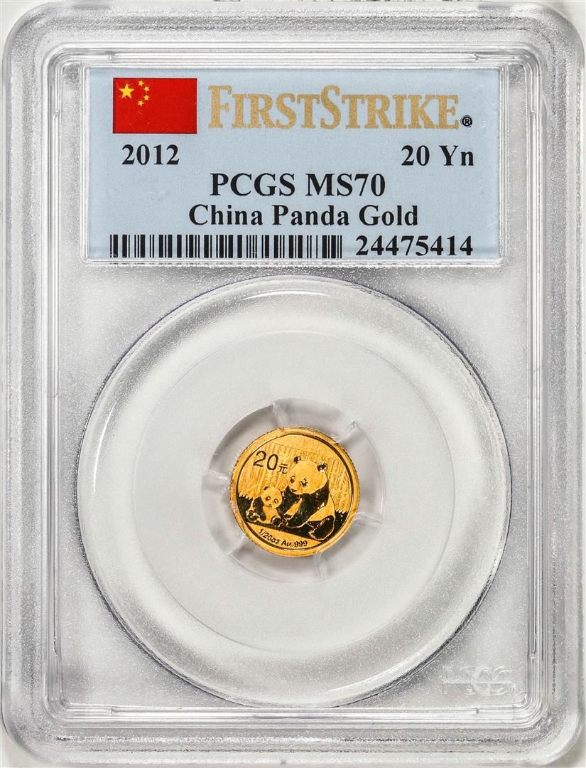 One 2012 China 20 Yuan Gold Panda Coin PCGS MS70 First Strike. PCGS Graded.