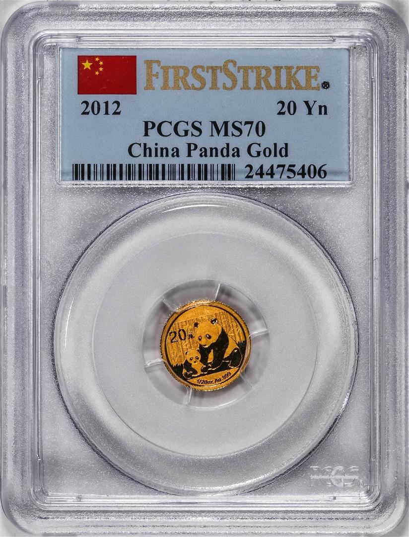 One 2012 China 20 Yuan Gold Panda Coin PCGS MS70 First Strike. PCGS Graded.