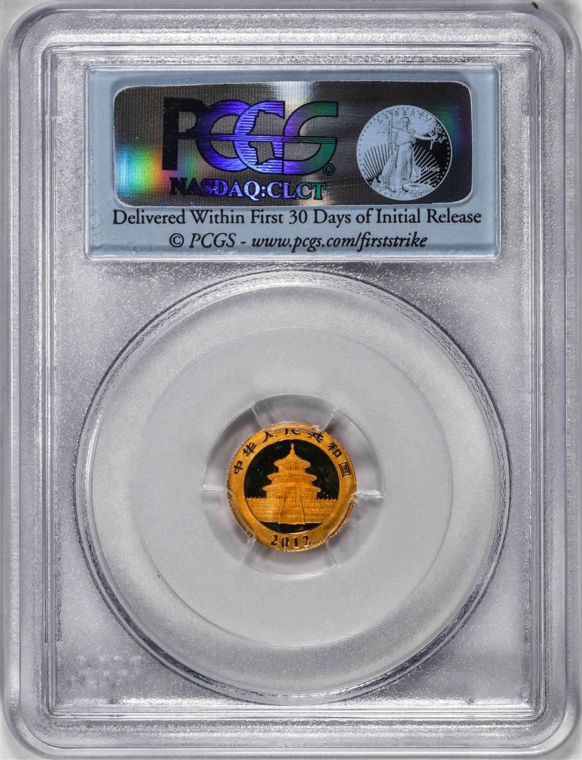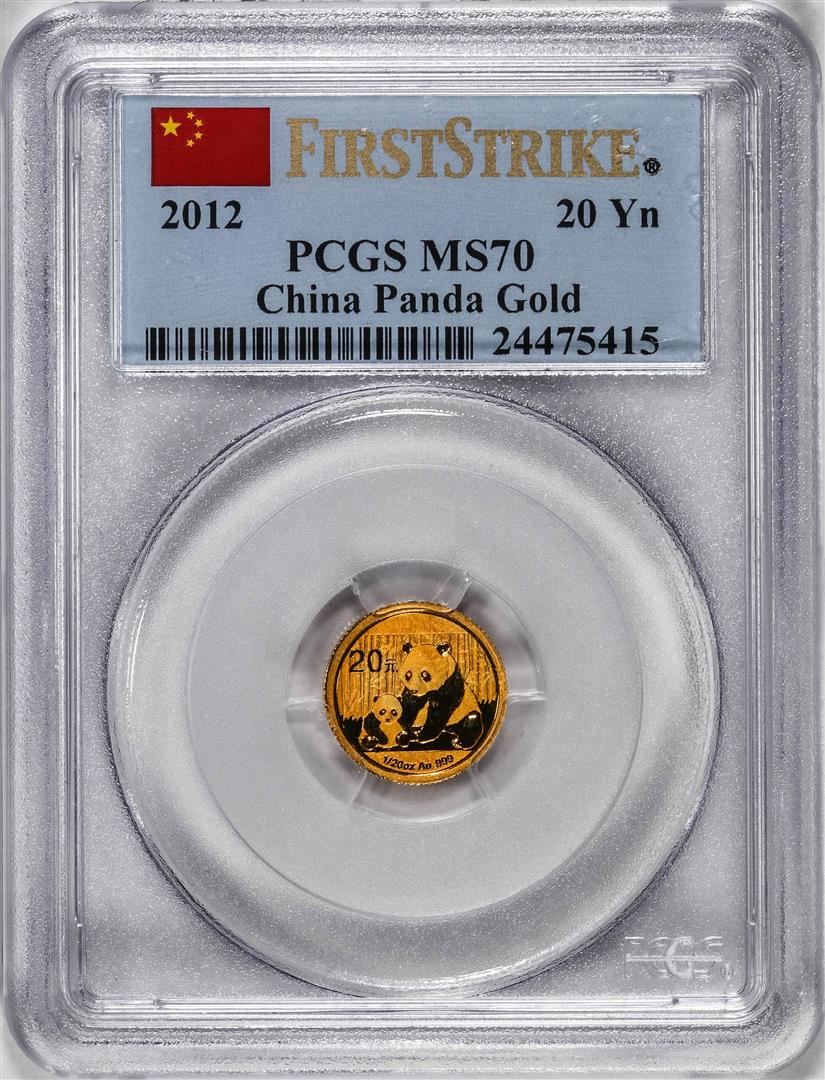 One 2012 China 20 Yuan Gold Panda Coin PCGS MS70 First Strike. PCGS Graded.