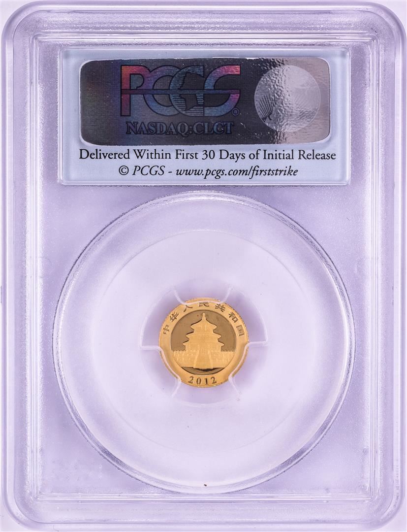 One 2012 China 20 Yuan Panda Gold Coin PCGS MS69 First Strike. PCGS Graded.