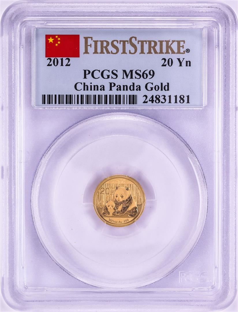 One 2012 China 20 Yuan Panda Gold Coin PCGS MS69 First Strike. PCGS Graded.