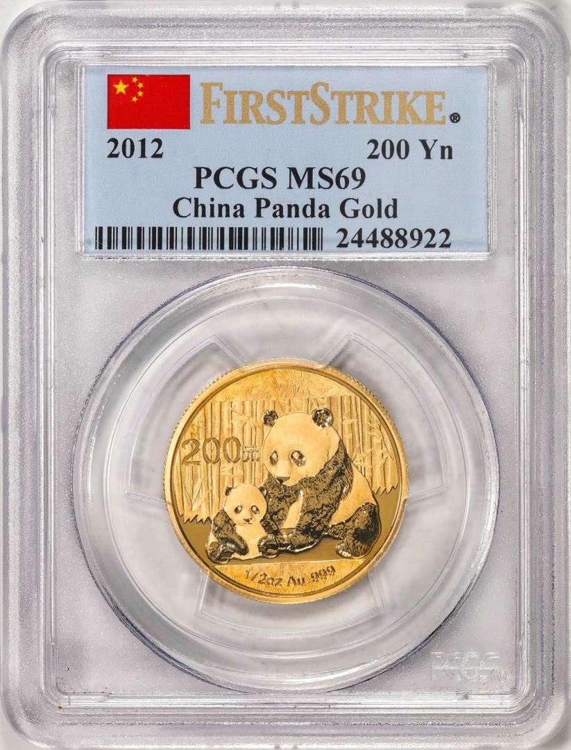 One 2012 China 200 Yuan Panda Gold Coin PCGS MS69 First Strike. PCGS Graded.