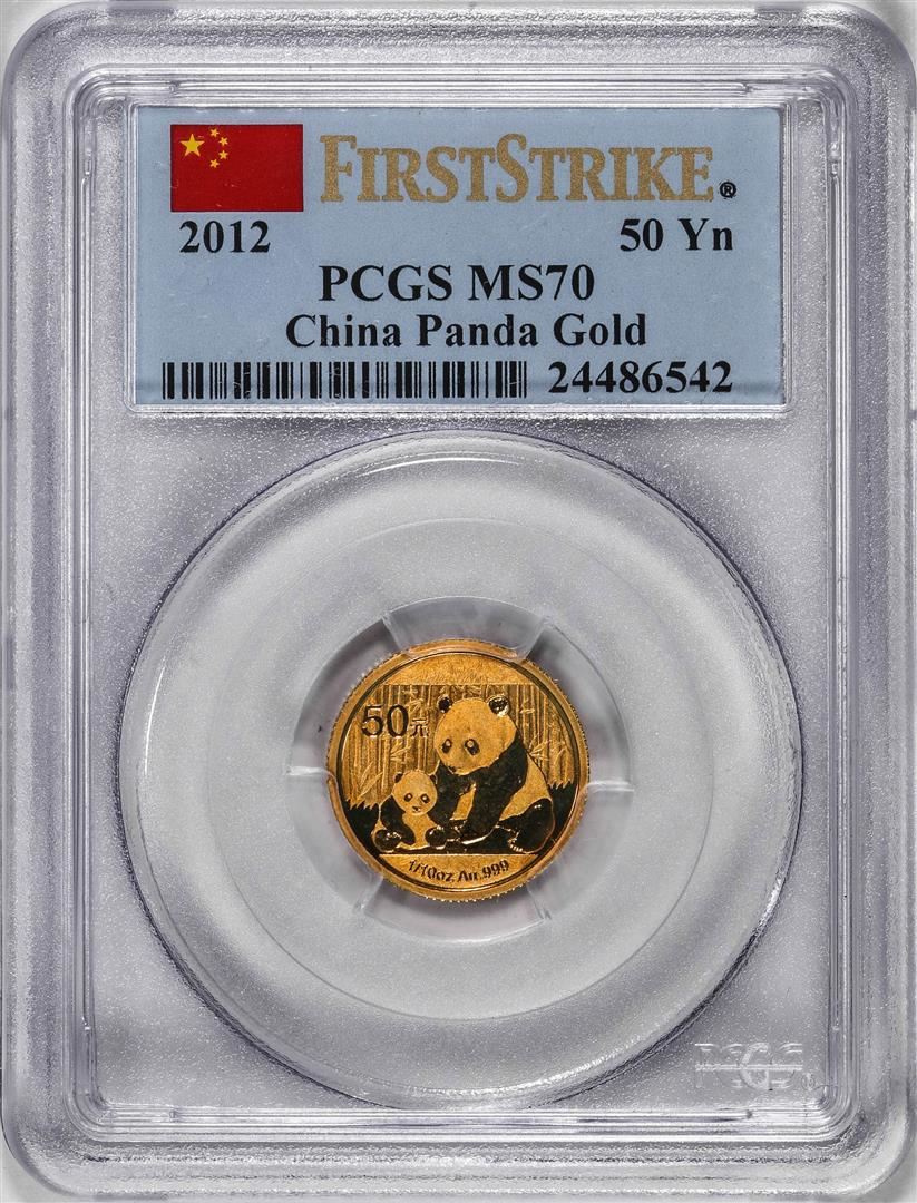 One 2012 China 50 Yuan Gold Panda Coin PCGS MS70 First Strike. PCGS Graded.