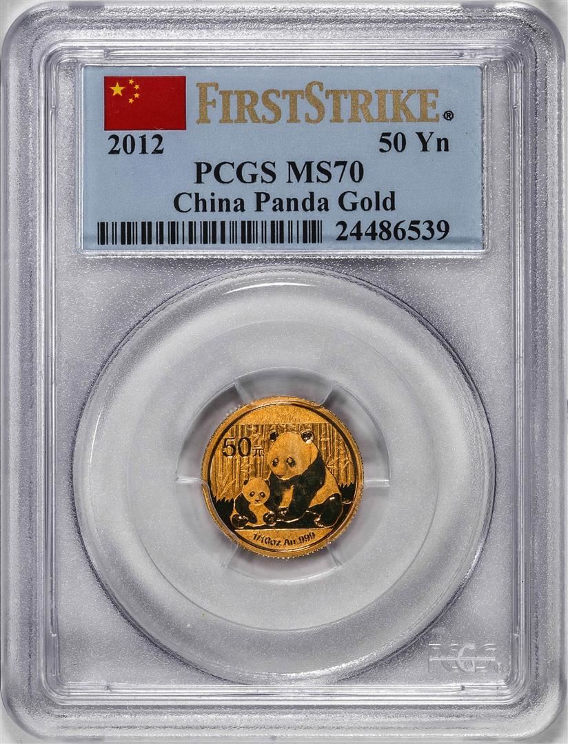 One 2012 China 50 Yuan Gold Panda Coin PCGS MS70 First Strike. PCGS Graded.