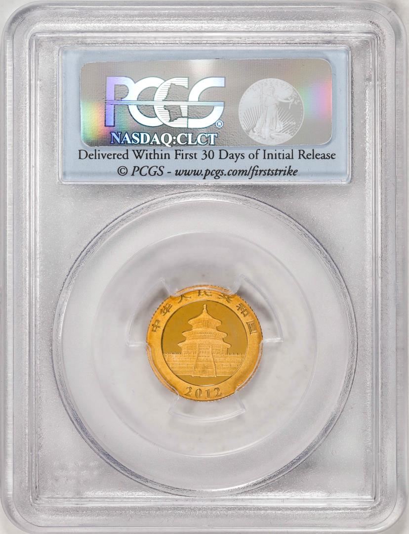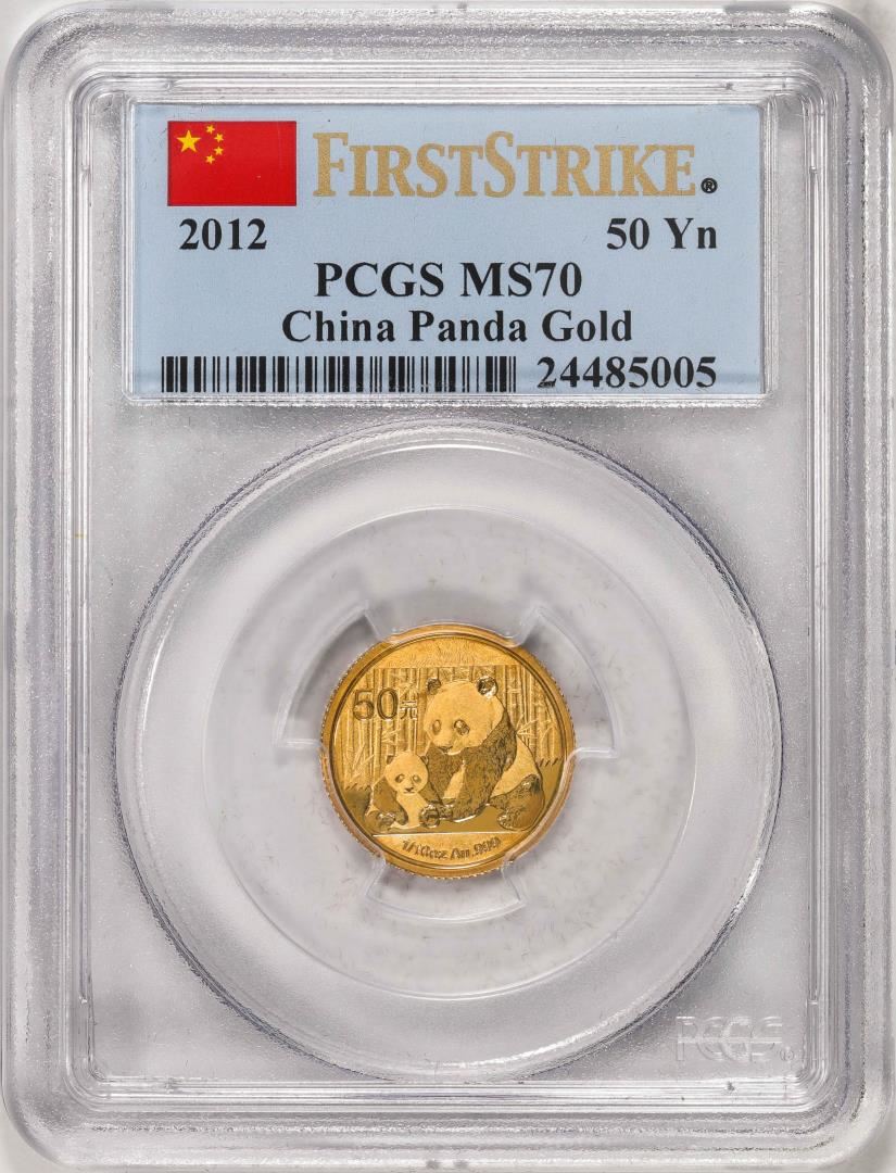 One 2012 China 50 Yuan Panda Gold Coin PCGS MS70 First Strike. PCGS Graded.