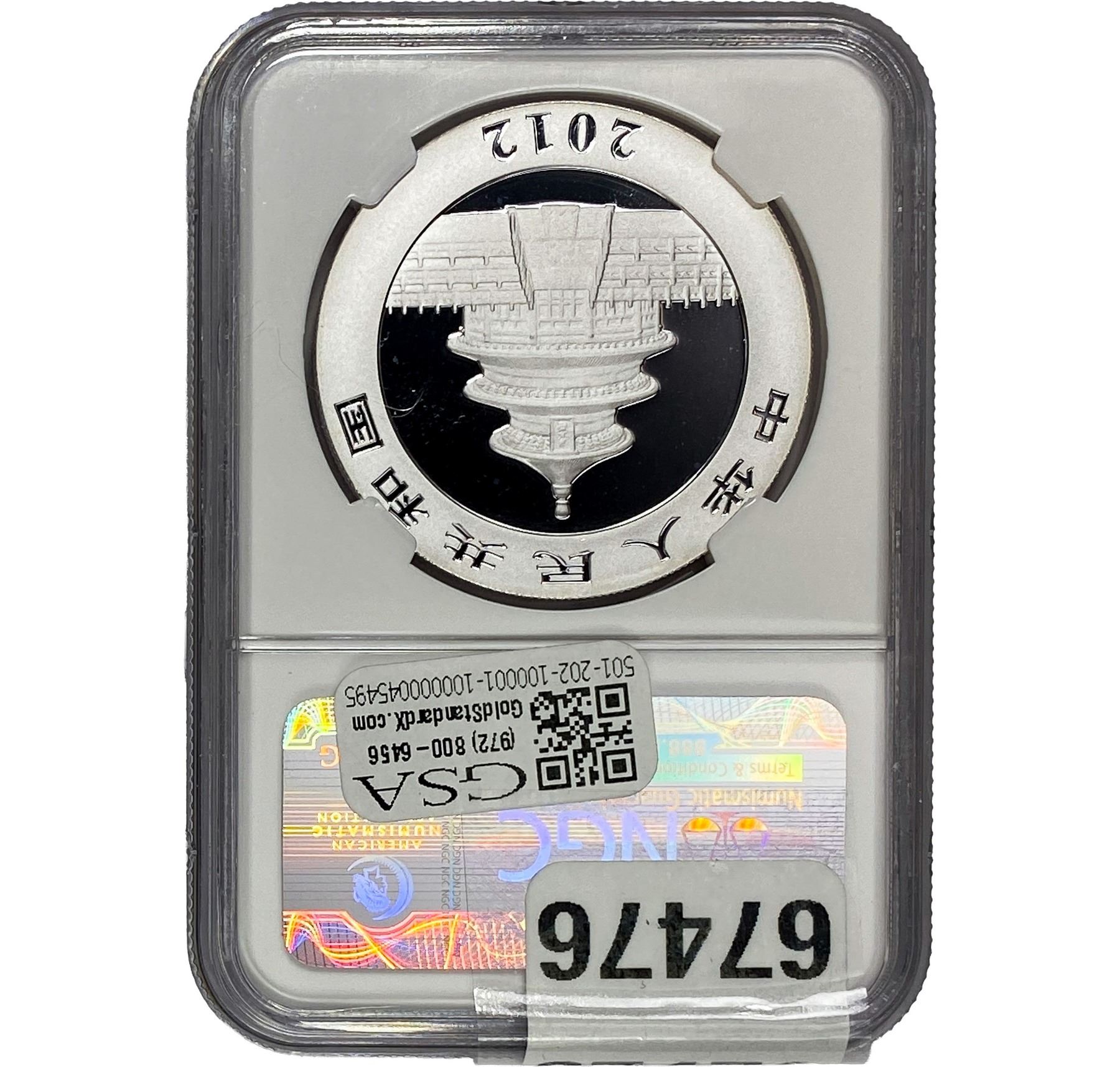 e. Coins sold referencing a third-party grading service are sold “AS IS” without any express or implied warranty, except for a guarantee by GSA that they are genuine. Removal or alteration of the holder, voids all of Bidder’s claims concerning that Product. Certain warranties may be available from the grading services and Bidders are referred to them for further details: Numismatic Guaranty Corporation (NGC), PO Box 4776, Sarasota, FL 34230, www.ngccoin.com/services/writtenguarantee.asp; Professional Coin Grading Services (PCGS), PO Box 9458, Newport Beach, CA 92658, www.pcgs.com/guarantee.html; ANACS, 6555 S. Kenton St., Ste. 303, Englewood, CO 80111; and Independent Coin Grading Co. (ICG), 7901 East Bellview, Ave., Suite 50, Englewood, CO 80111.