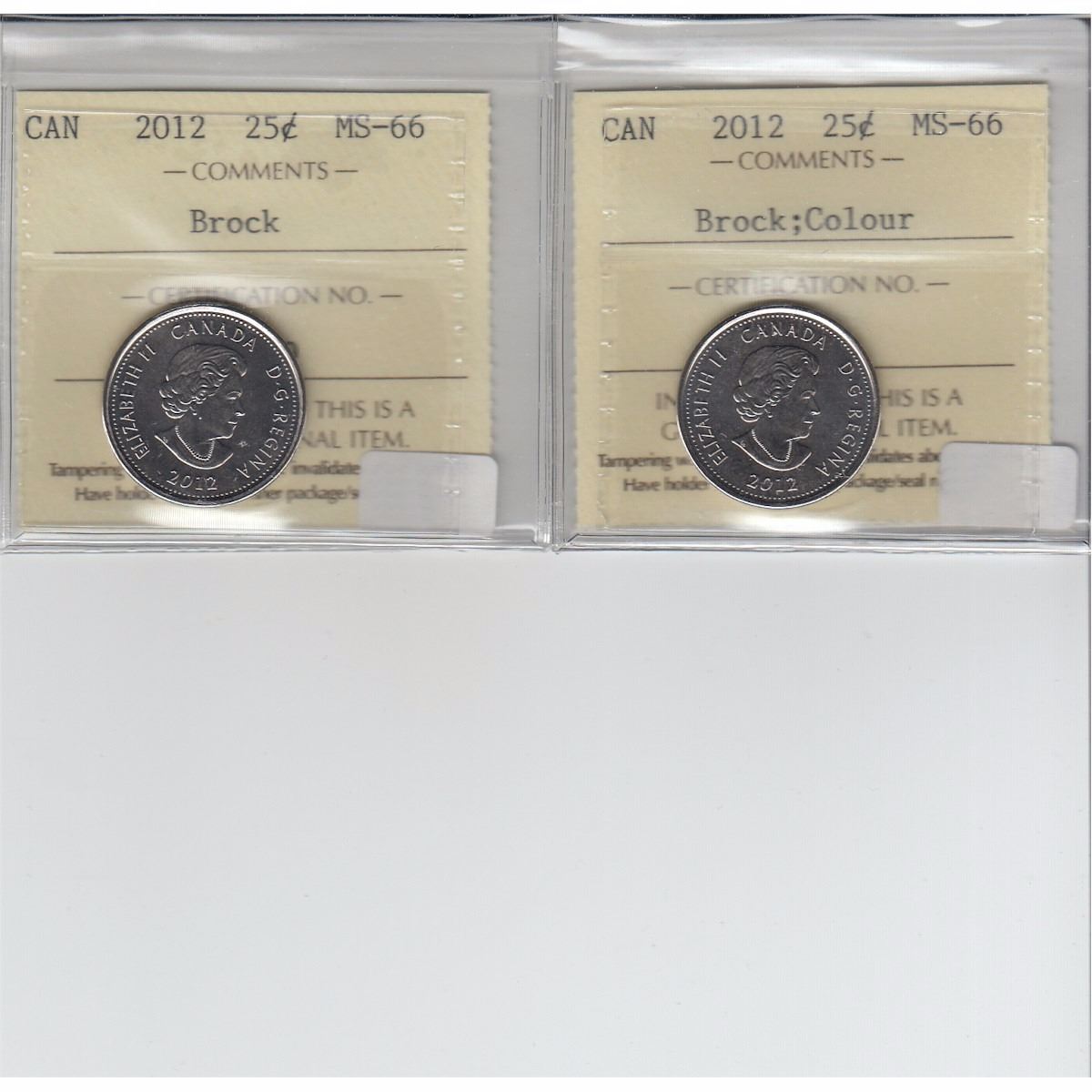 2012 Coloured & No Coloured Sir Isaac Brock 25-cent ICCS Certified Coins MS-66. 2pcs. Buyers Premium will be added on all items as per our terms of sale. We accept Paypal, Credit Card, E-Transfer Payments, Cheque or Money Orders (there is an additional 3% fee for using Paypal or Credit Card). All invoices will be emailed immediately following the auction, please contact us if you would like to pay by credit card or receive a new revised lower total for mailing in payment or sending an e-transfer (3% discount). All Items Are Sold "AS IS", no returns
