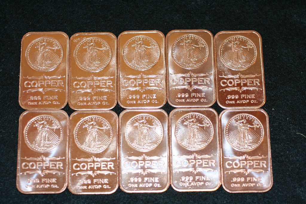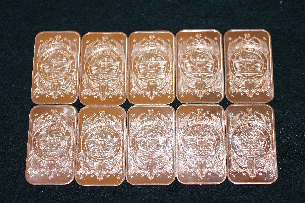 2012 Copper Ingot, .999 Fine 1 Oz., Lot of 10