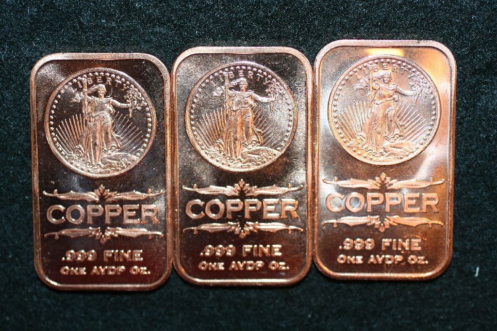 2012 Copper Ingot, .999 Fine 1 Oz., Lot of 3