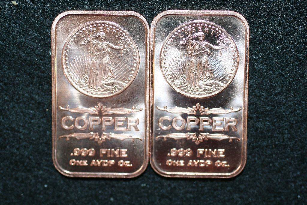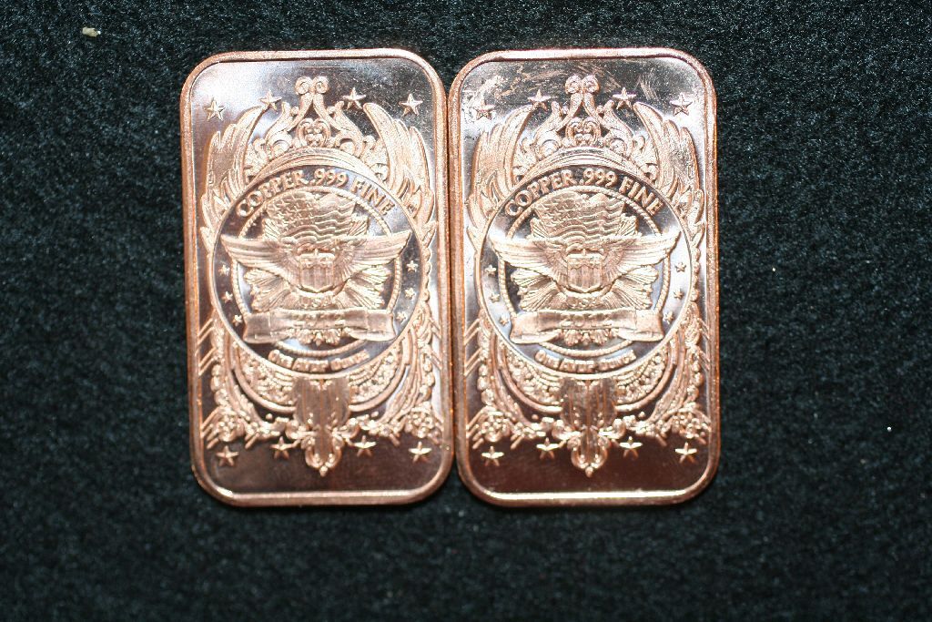 2012 Copper Ingot, .999 Fine 1 Oz., lot of 2