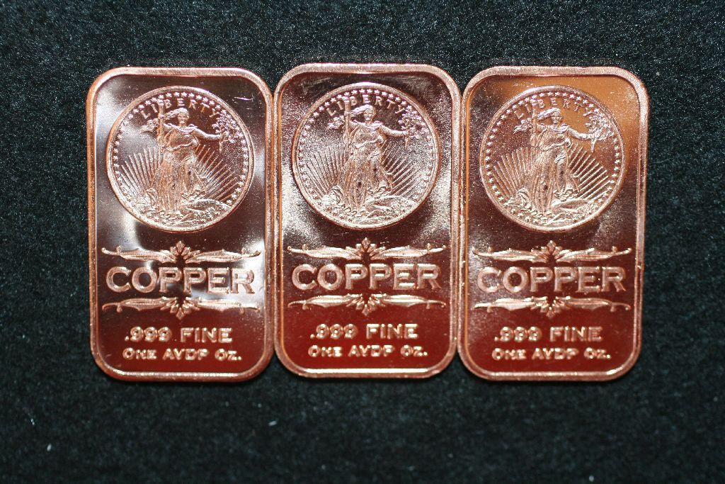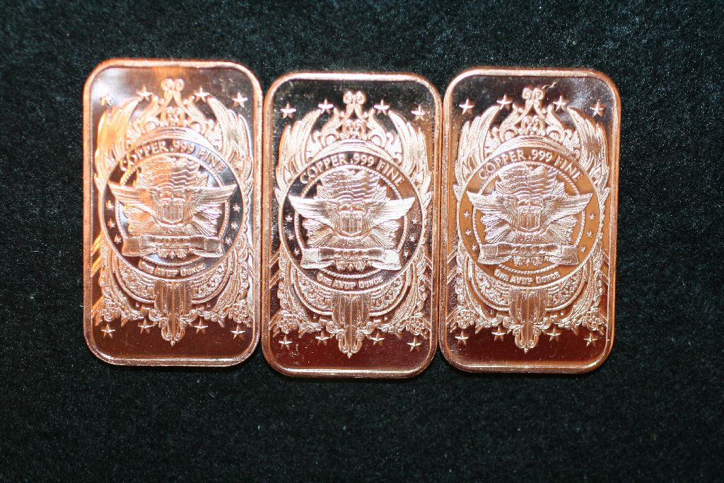 2012 Copper Ingot, .999 Fine 1 Oz., lot of 3