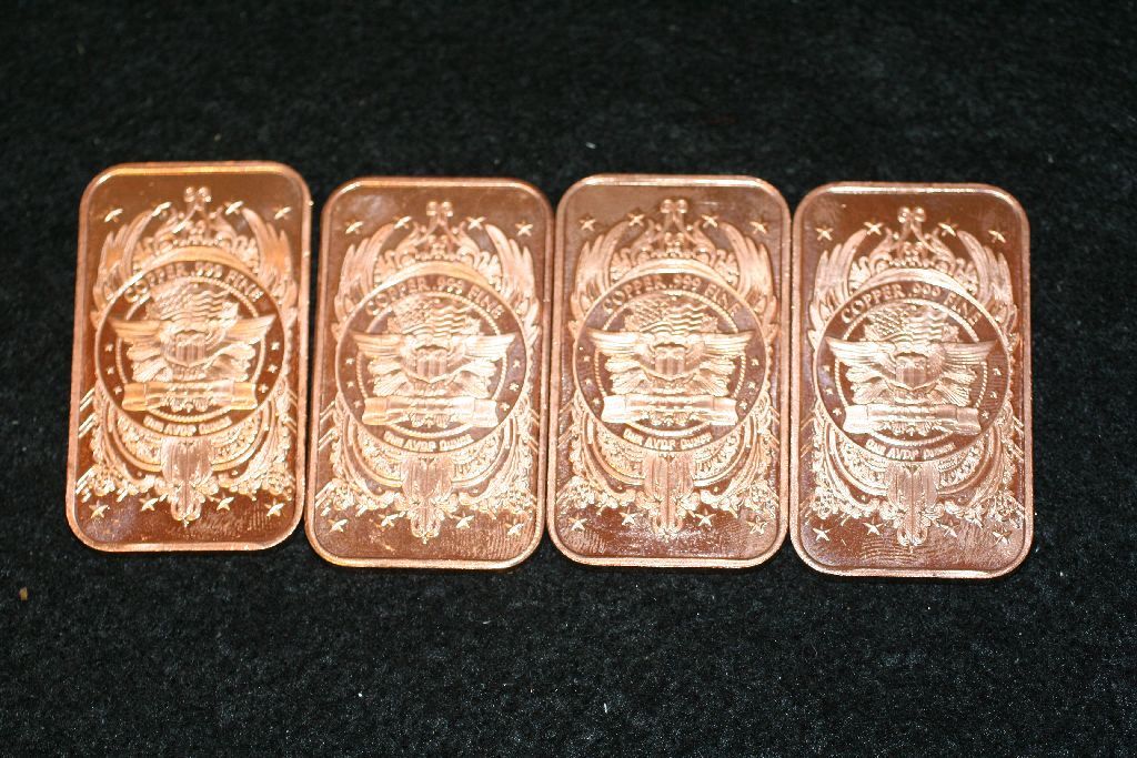 2012 Copper Ingot, .999 Fine 1 Oz., lot of 4