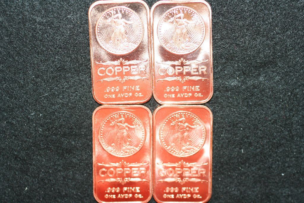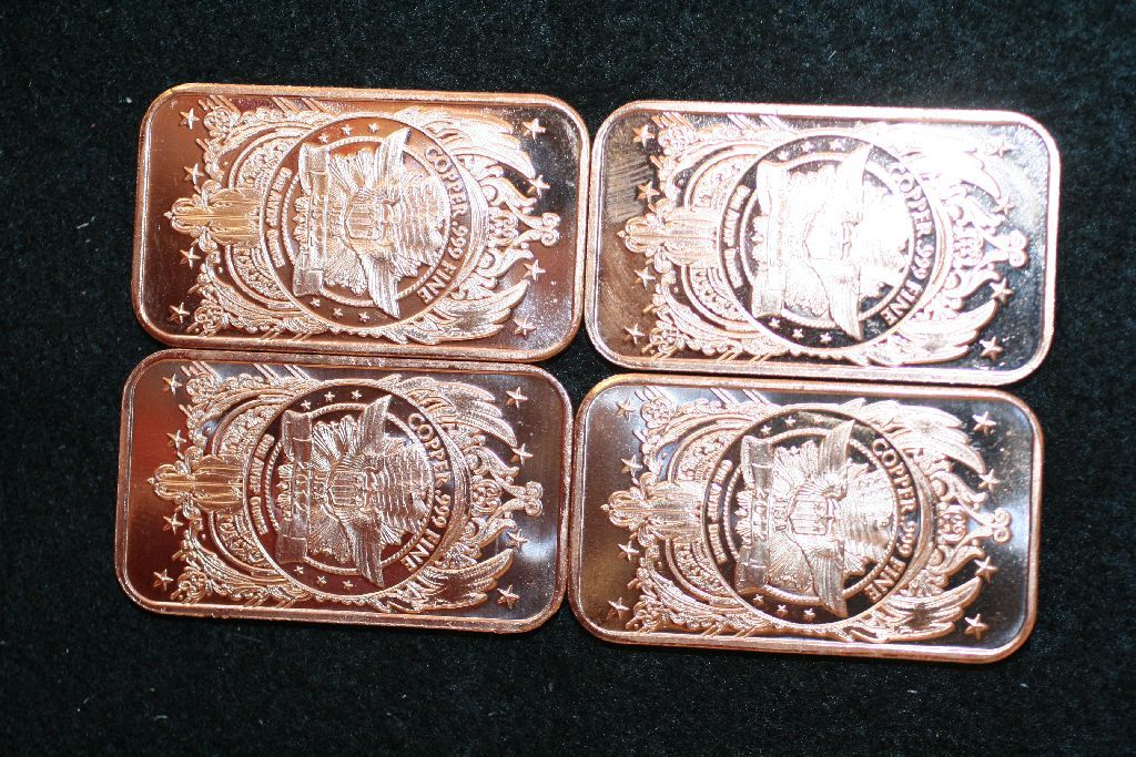 2012 Copper Ingot, .999 Fine 1 Oz., lot of 4
