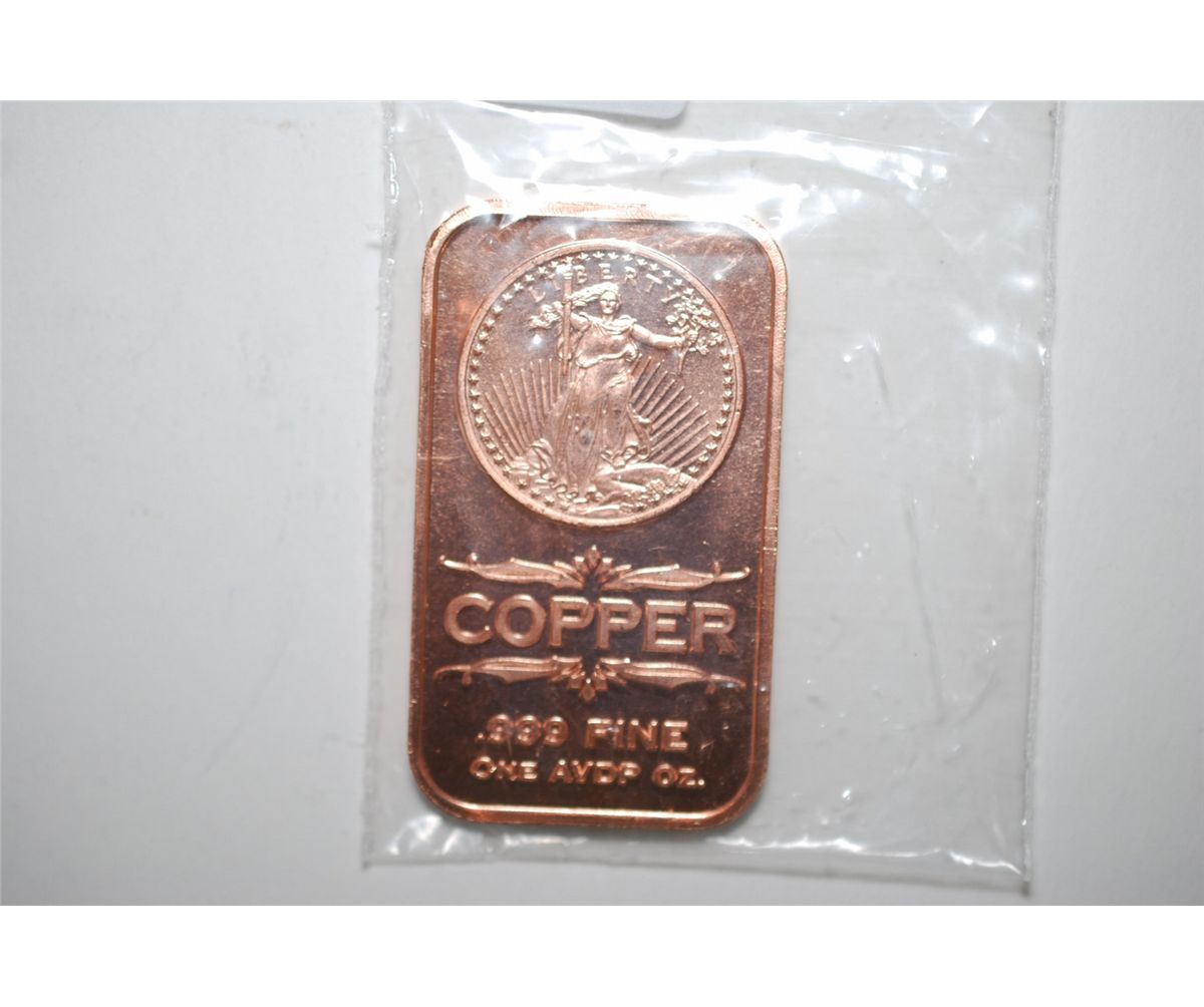 2012 Copper Ingot; .999 Fine Copper 1 Oz.; EST. $5-10