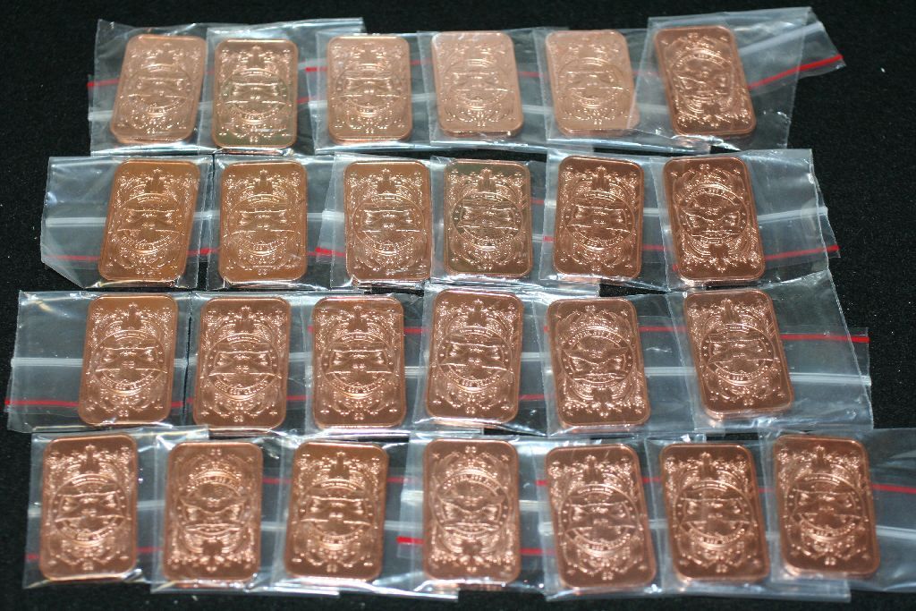 2012 Copper Ingot; .999 Fine Copper 1 Oz., Lot of 25