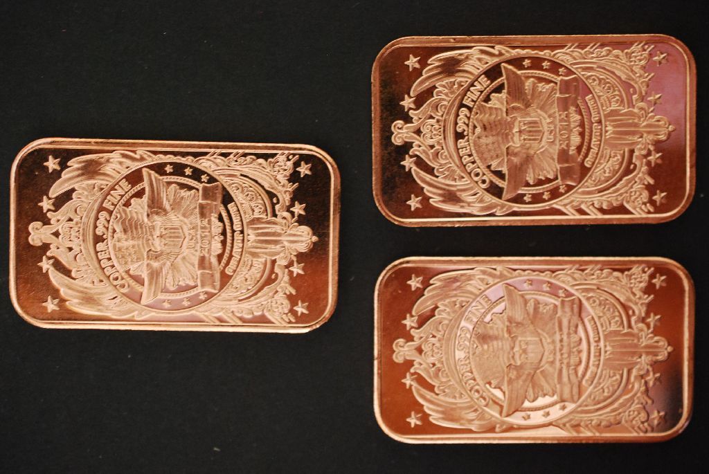 2012 Copper Ingot; .999 Fine Copper 1 Oz.; Lot of 3