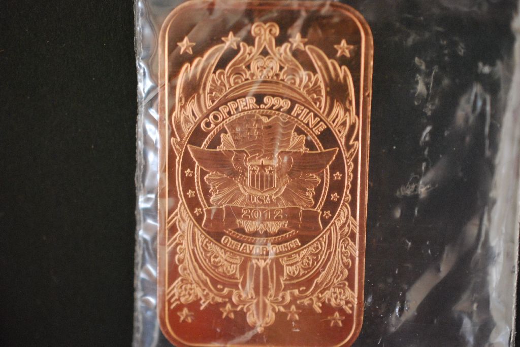 2012 Copper Ingot; .999 Fine Copper 1 Oz.