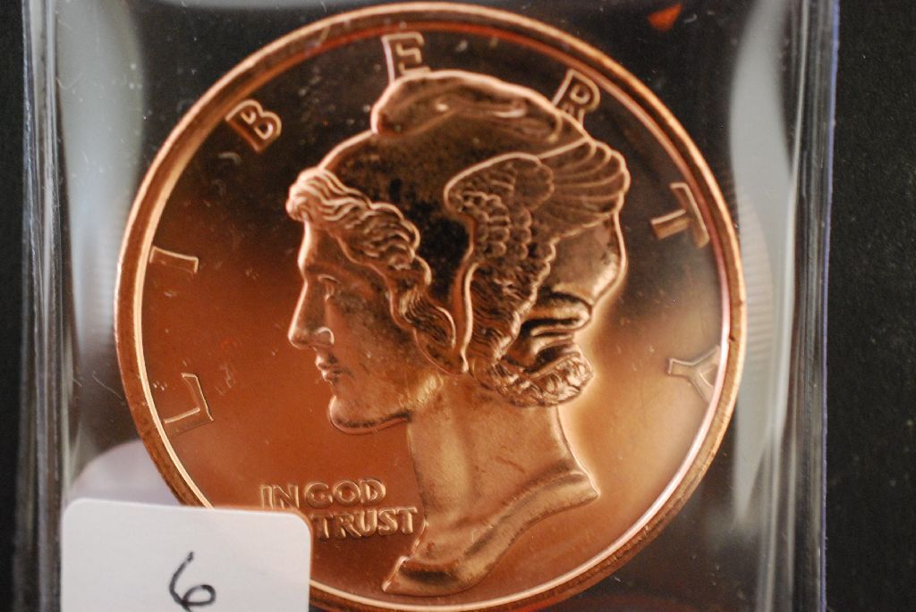 2012 Copper Round; .999 Fine Copper 1 Oz.; "Mercury Dime"