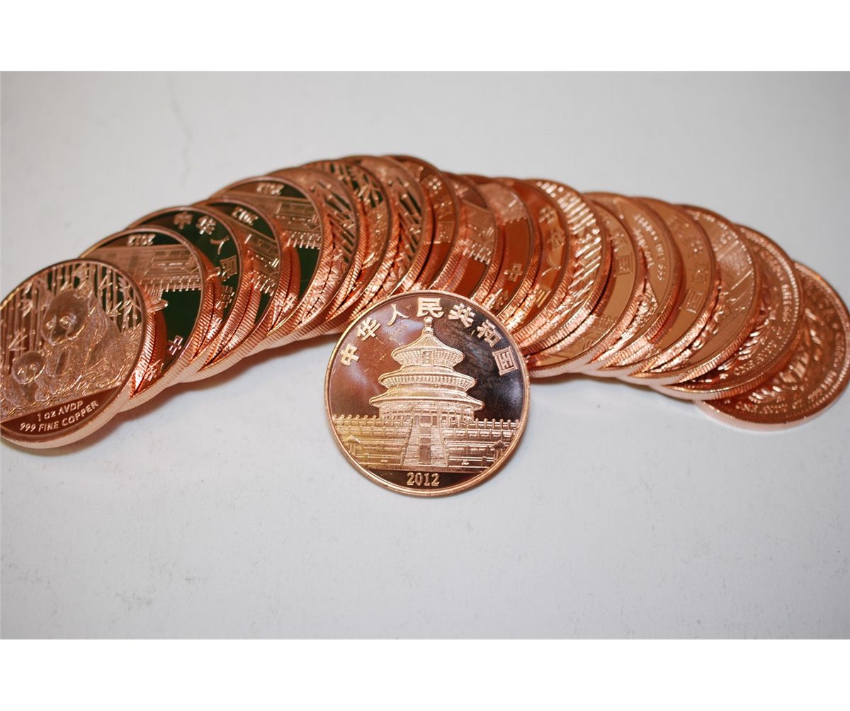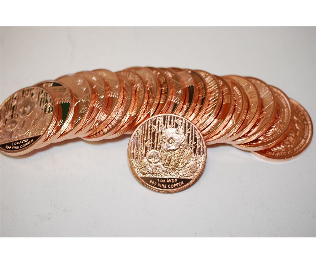 2012 Copper Round "China Panda" (18) & Copper Round "Standing Liberty" (2); .999 Fine Copper 1 Oz.; Roll Total Lot of 20; EST. $30-40