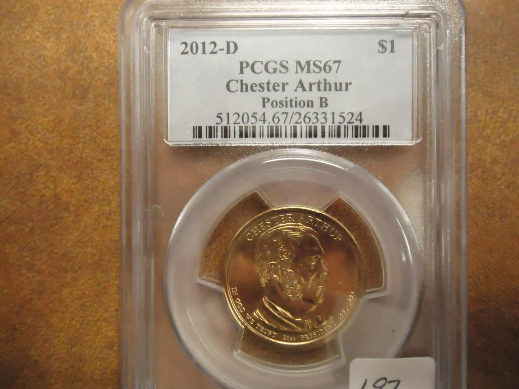 2012-D ARTHUR DOLLAR PCGS MS67 POS. B