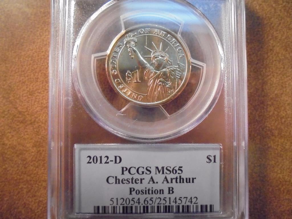 2012-D CHESTER ARTHUR DOLLAR PCGS MS65 POS. B