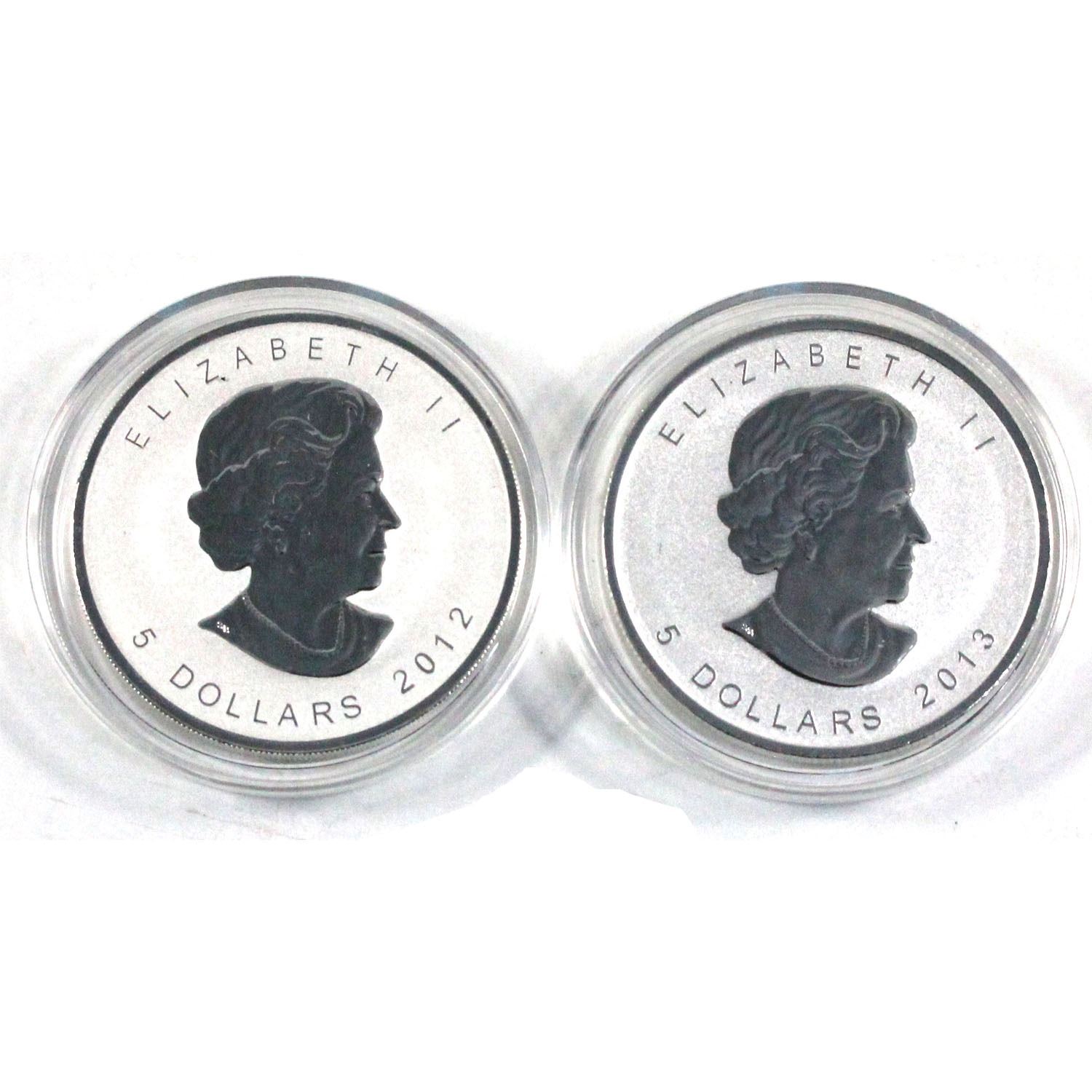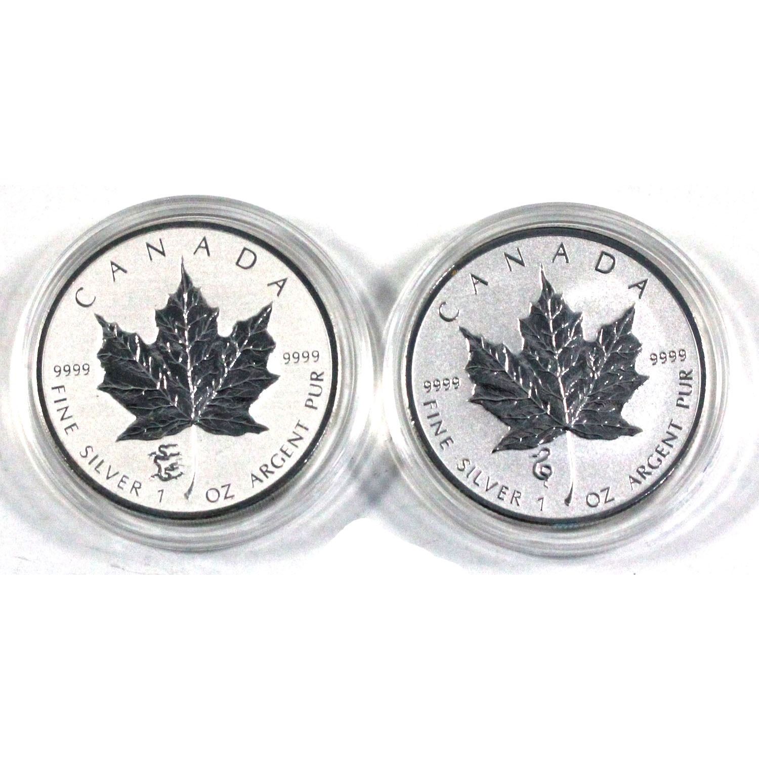2012 Dragon & 2013 Snake Canada 1oz .9999 Fine Silver Privy Maple Leafs in Capsules. 2pcs (TAX Exempt)