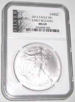 2012 *EARLY RELEASES* CERTIFIED BY NGC MS-69 SILVER EAGLE SERIAL #3566808-043!! SILVER EAGLE CAME OUT OF SAFE!! ***Coin, Currency & All Items Listed in this auction - Grades, Conditions and Values are not Safe Deposit Coins LLC Responsibilty. Grades, Condition and Values are determined by Consigner(s) & Buyers ONLY