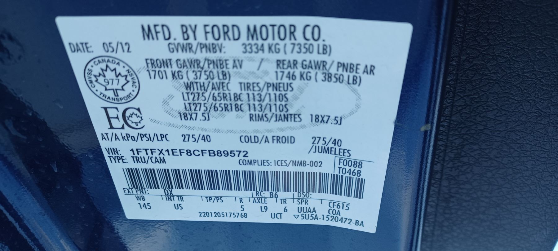 2012 FORD F-150 XTR 4X4 FULL LOAD 96067 KM 5.0L ENGINE VERY CLEAN, EXTENDACAB 1FTFX1EF8CFB89572