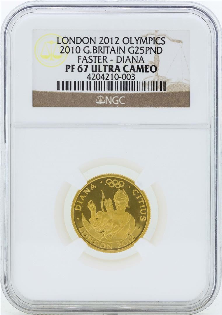 One 2012 Great Britain 25 Pound London Olympics Commemorative Gold Coin PF67 Ultra Cameo.