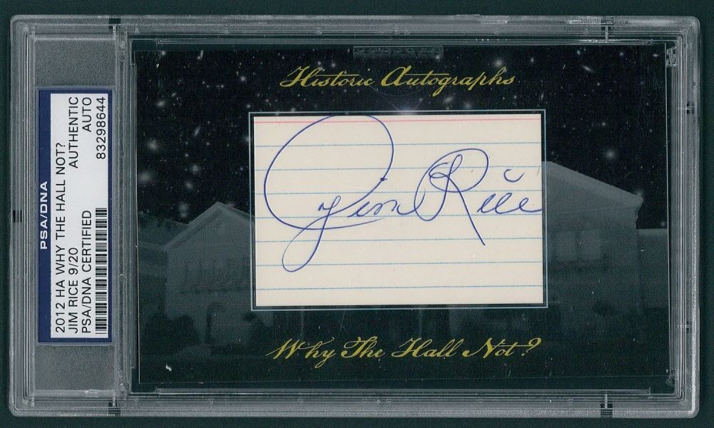 2012 Historic Autographs Why The Hall Not? Jim Rice (Red Sox). Please see the scans below for details on the condition of the card. The autograph has been authenticated and encapsulated by PSA/DNA for authenticity purposes.