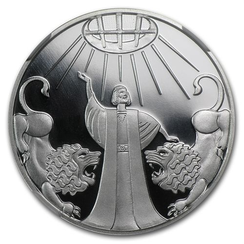 2012 Israel Daniel in the Lion's Den Silver 1 NIS MS-70 **|**|** Year: 2012 ; Mint Mark: MS-70 ; Grade: Star of David ; Denomination: NIS 1 ; MSRP: $200