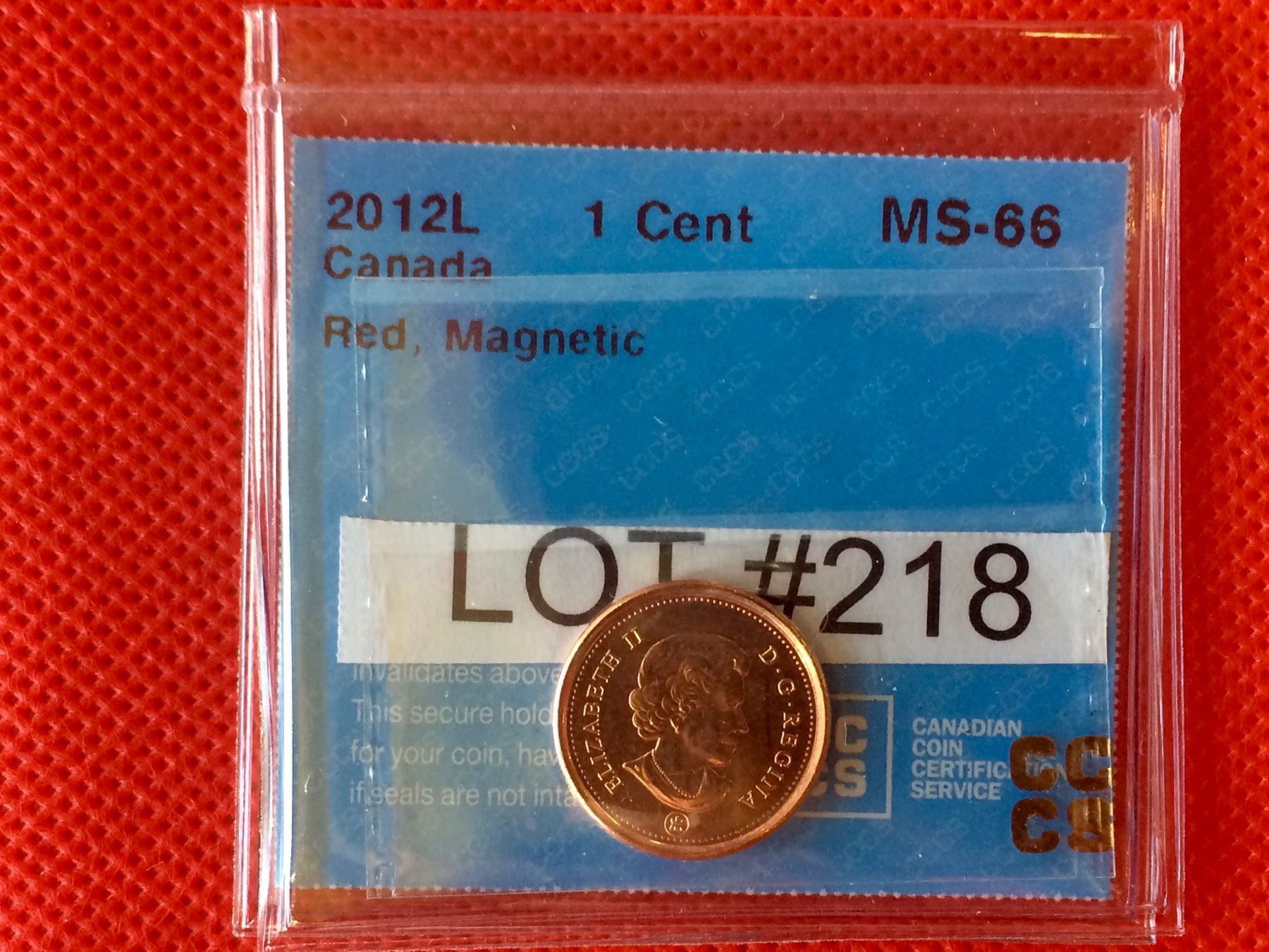 2012 Logo Canada 1 Cent CCCS MS-66, Red; Magnetic