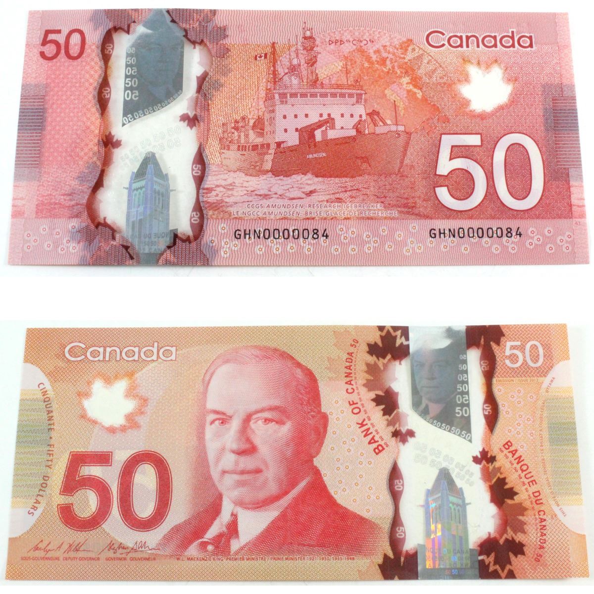 2012 Low Serial Number $50.00 Note from the Bank of Canada; cat code BC-72b, Wilkins-Poloz signatures, Prefix GHN0000084 in Almost UNC Condition. Buyers Premium will be added on all items as per our terms of sale. We accept Paypal, Credit Card, E-Transfer Payments, Cheque or Money Orders (there is an additional 3% fee for using Paypal or Credit Card). All invoices will be emailed immediately following the auction, please contact us if you would like to pay by credit card or receive a new revised lower total for mailing in payment or sending an e-transfer (3% discount). All Items Are Sold "AS IS", no returns