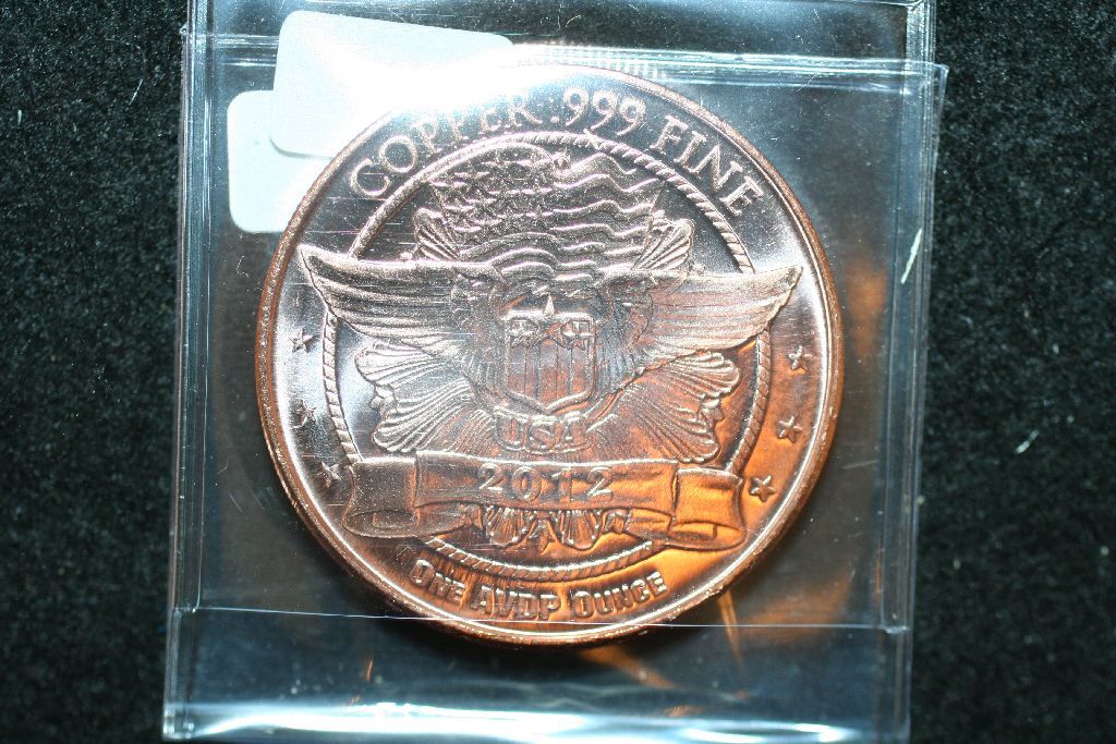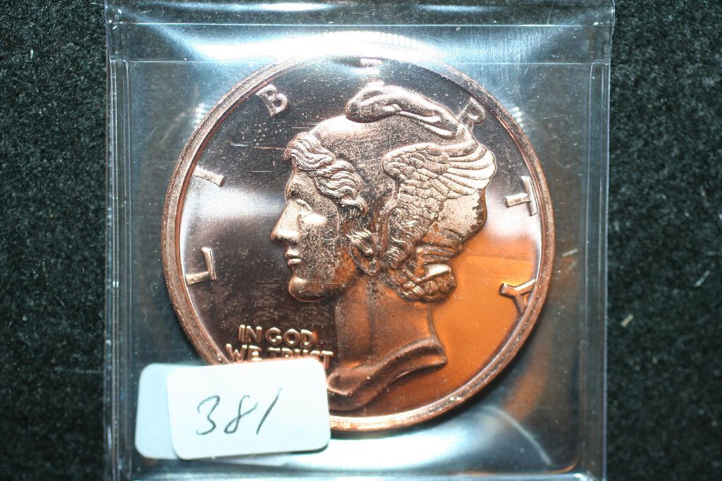 2012 "Mercury Dime" Copper Round; .999 Fine Copper 1 Oz.
