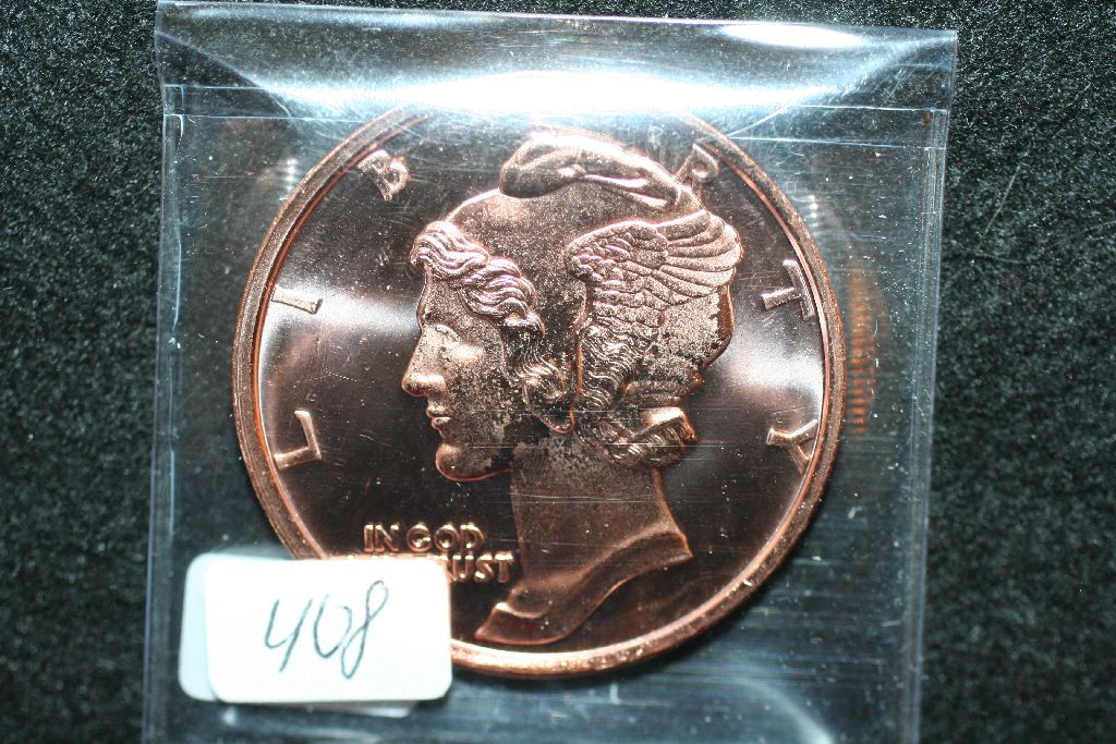 2012 "Mercury Dime" Copper Round; .999 Fine Copper 1 Oz.