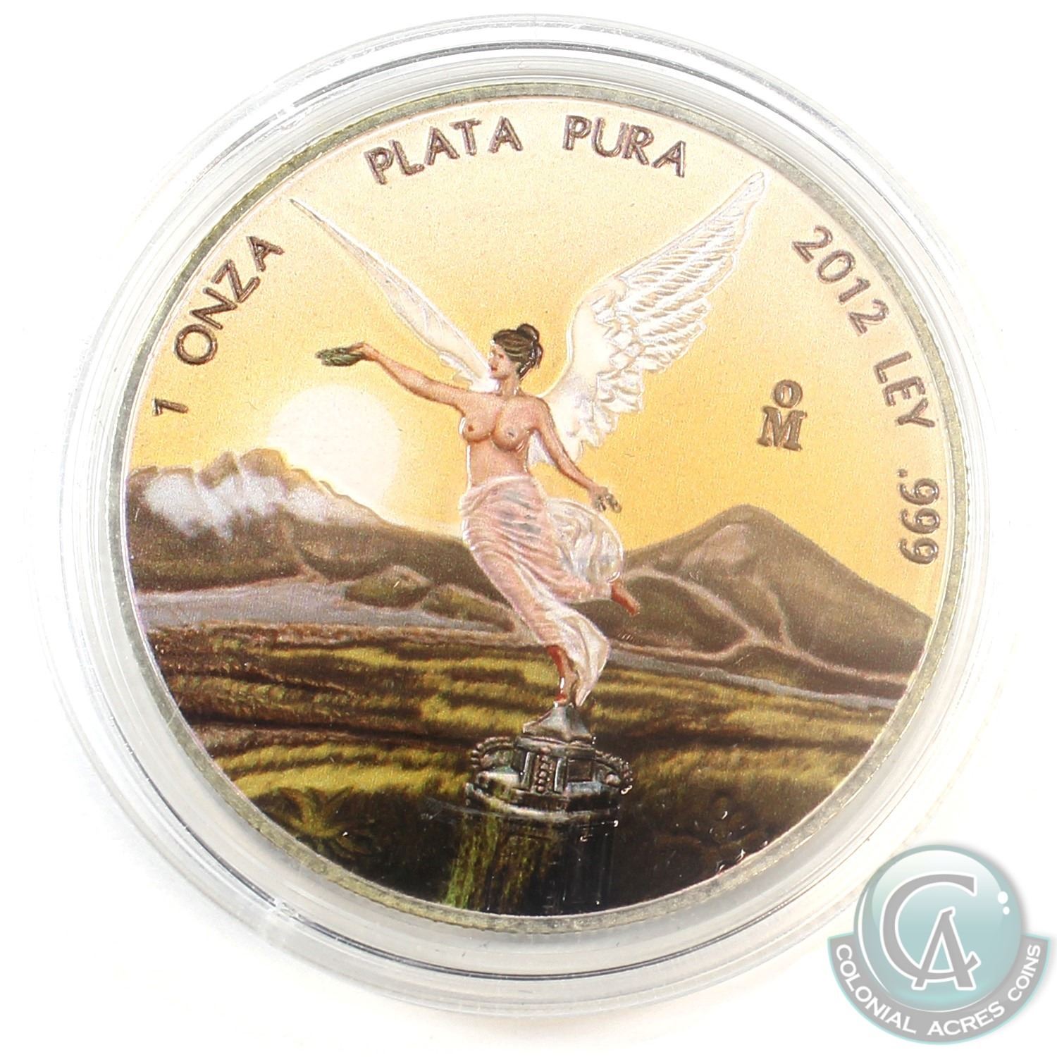 2012 Mexico 1oz Coloured Libertad .999 Fine Silver Coin in Capsule (Scratched capsule). (TAX Exempt)