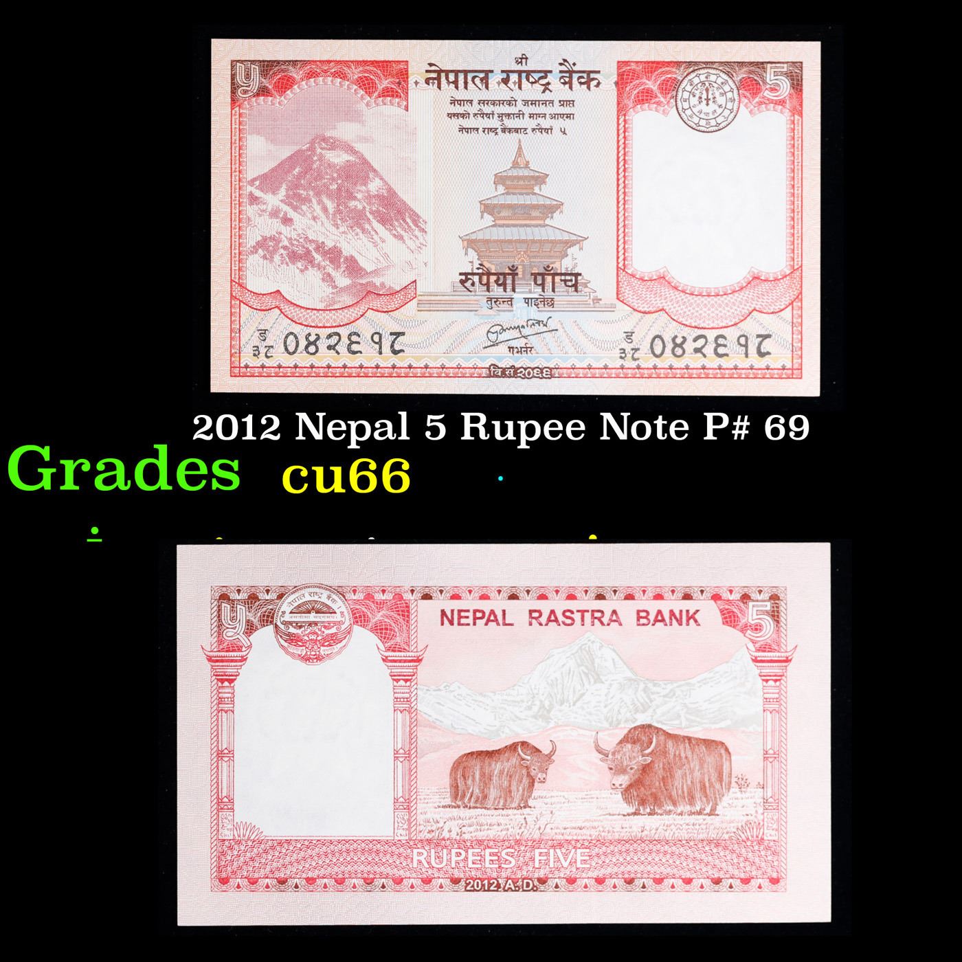 2012 Nepal 5 Rupee Note P# 69 Grades Gem+ CU.