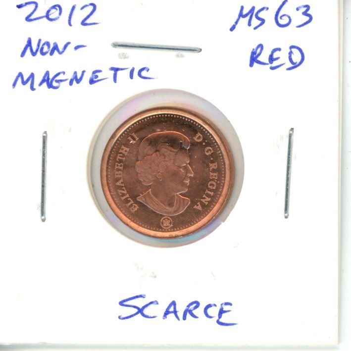 2012 Non-Magnetic Canadian Small Cent. MS-63 Red. Scarce.