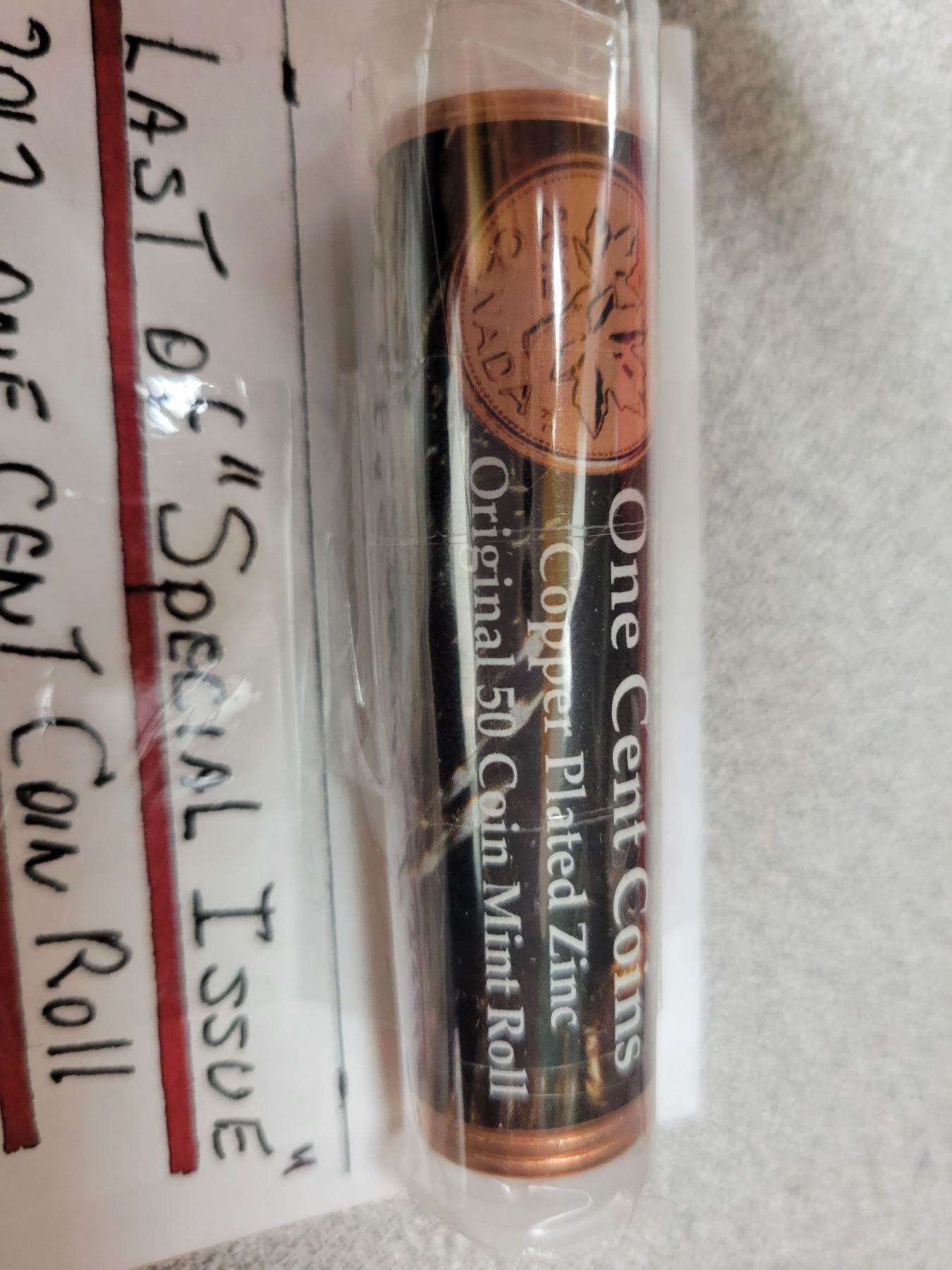 2012 One cent coin roll 'copper plated zinc' Canada's last one cent coins