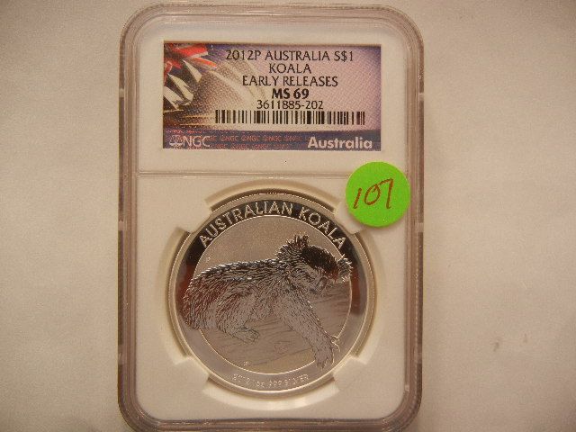 2012-P $1 Australian Koala, Early Releases, Graded by NGC MS69