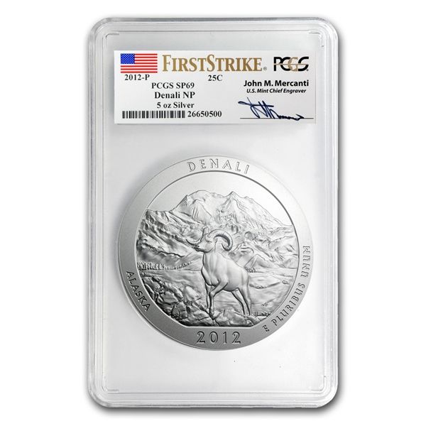 2012-P 5 oz Denali SP-69 First Strike PCGS John Mercant **|**|** 2012-P 5 oz Denali SP-69 First Strike PCGS John Mercanti Label ; MSRP: $800