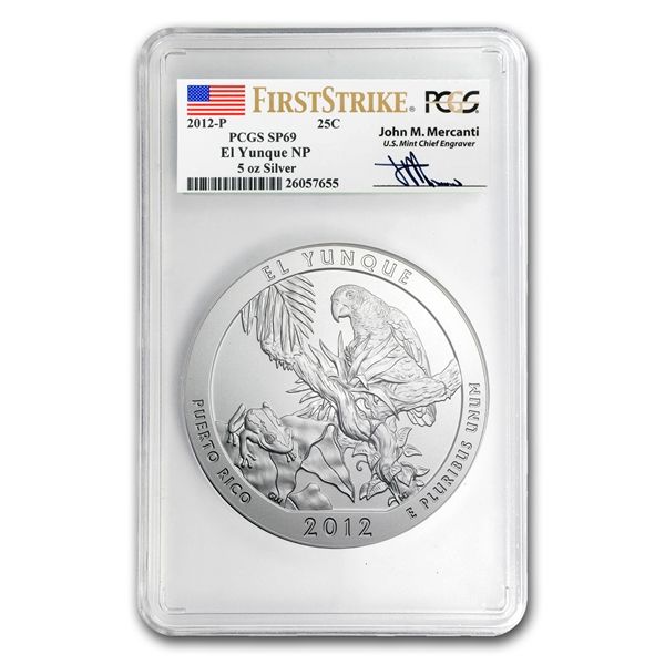 2012-P 5 oz El Yunque SP-69 First Strike PCGS John Merc **|**|** 2012-P 5 oz El Yunque SP-69 First Strike PCGS John Mercanti Label ; MSRP: $900